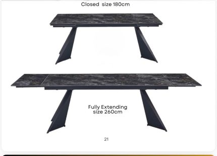Chicago Extendable Dining Table 180–260cm Ceramic Black Top with Black Legs – Seats 4 to 12 | Louis Dining Sets
