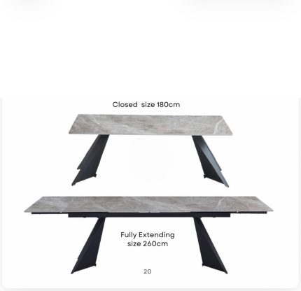 Chicago Extendable Dining Table 180–260cm Ceramic Grey Top with Black Legs – Seats 4 to 12 | Louis Dining Sets
