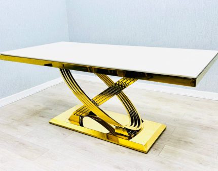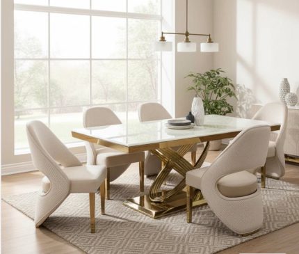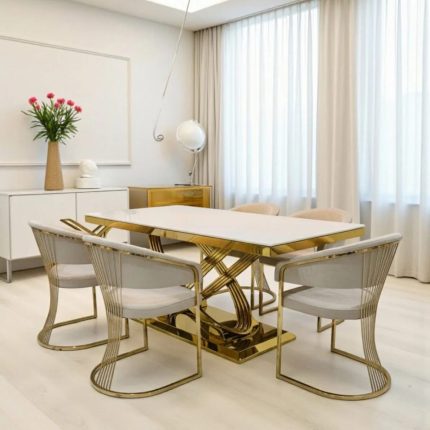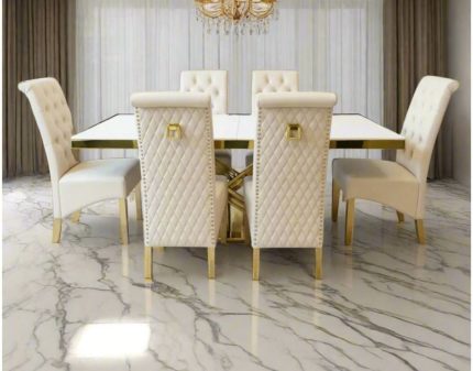Price range: £1,350.00 through £1,950.00Rose Cream Gold Marble Dining Table with Santorini Cream Gold Dining Chairs | Louis Dining Sets