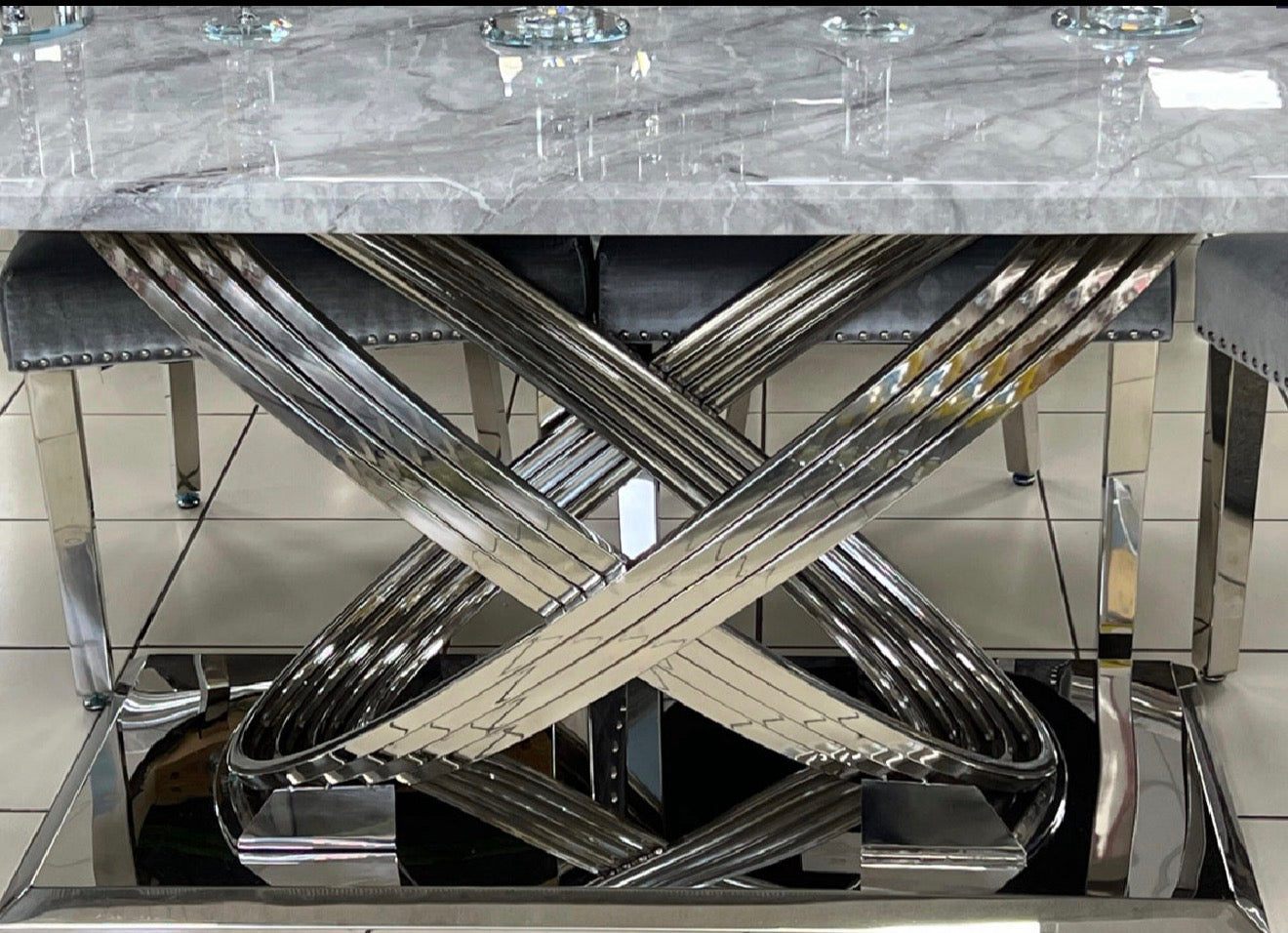 Louise Marble Dining Table Grey + 4 Majestic Lion Knocker Chairs And Bench