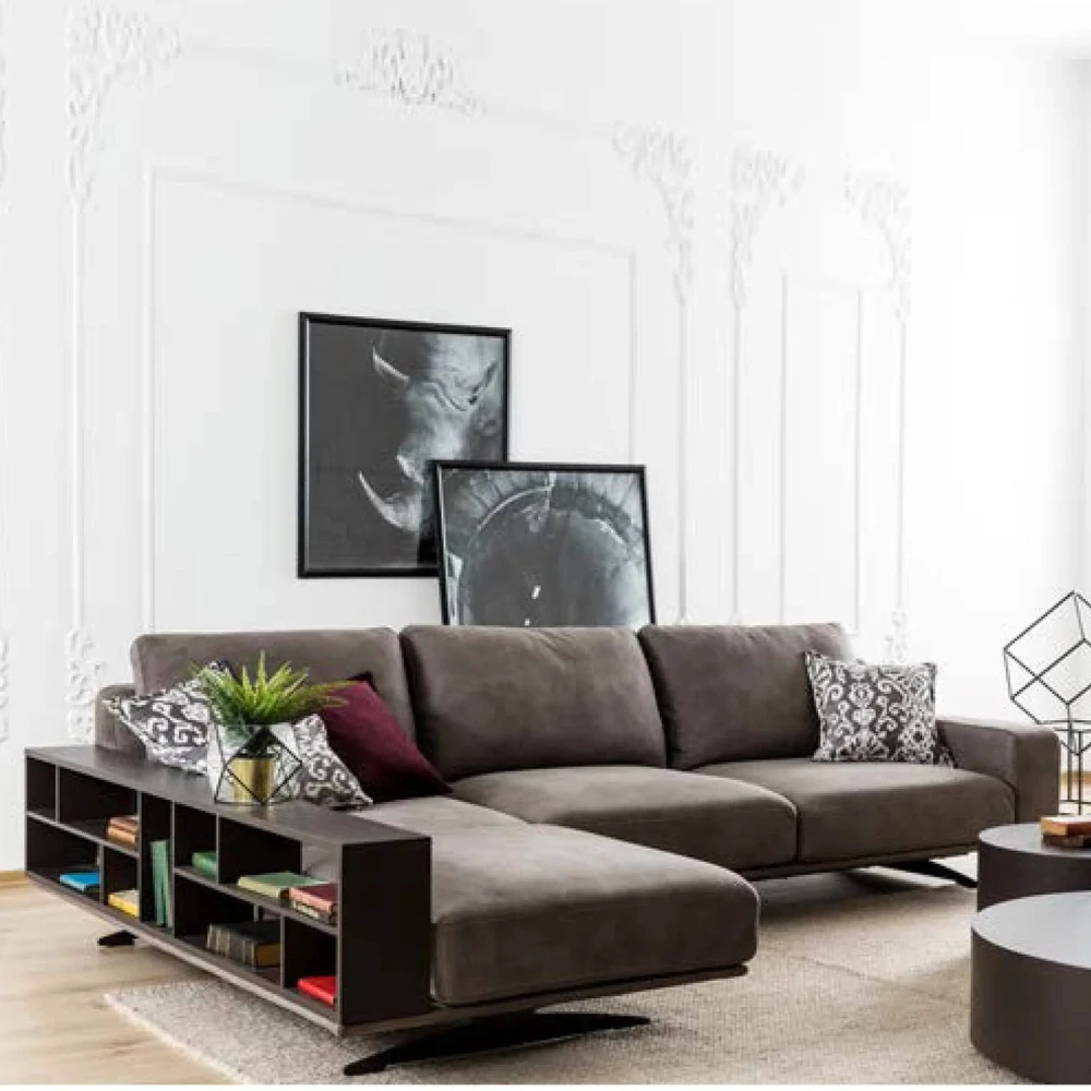 ALODON – L Shape Sofa With Daybed and Side Shelf