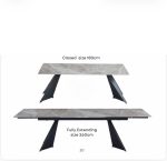 Transform your dining space with a modern extendable dining table designed for both everyday meals and special family gatherings. This stylish ceramic dining table features a stunning white-gold top with a marble-inspired finish, paired with sleek black legs for a sophisticated and contemporary look.