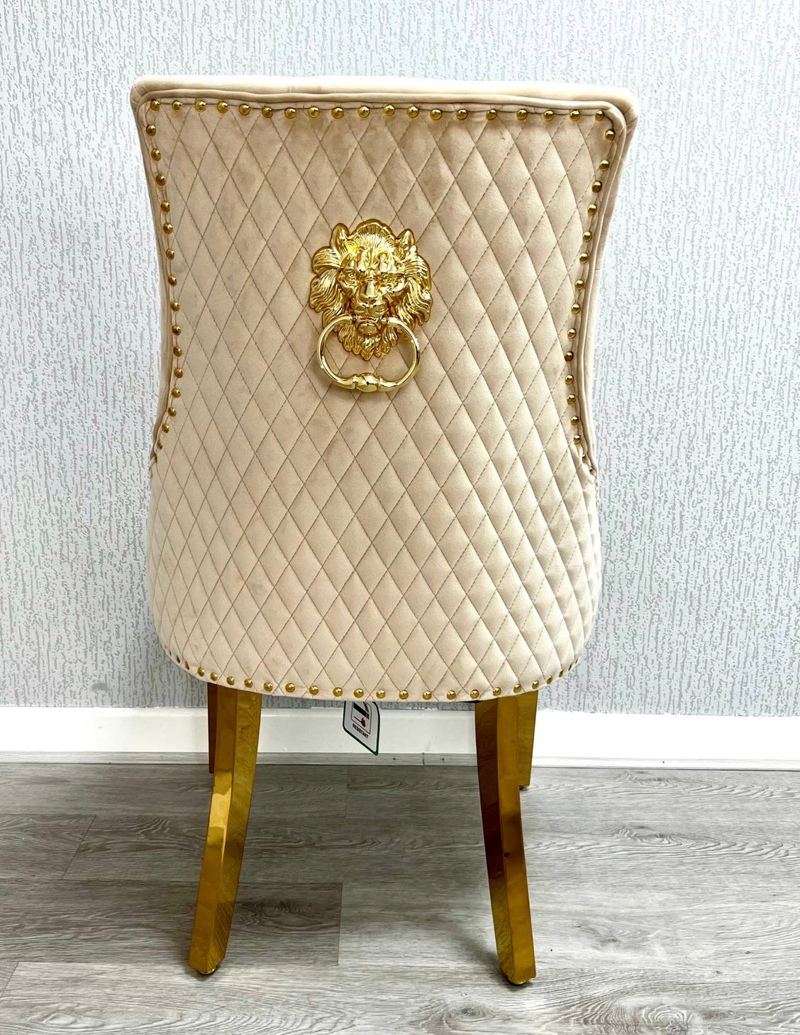 Home Louis Dining Sets Louis Gold Table With Bentley Mink & Gold Dining Chairs Lion Knocker