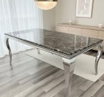 Rose 180cm Grey Marble Dining Table With Lion Knocker Dining Chairs | Louis Dining Sets