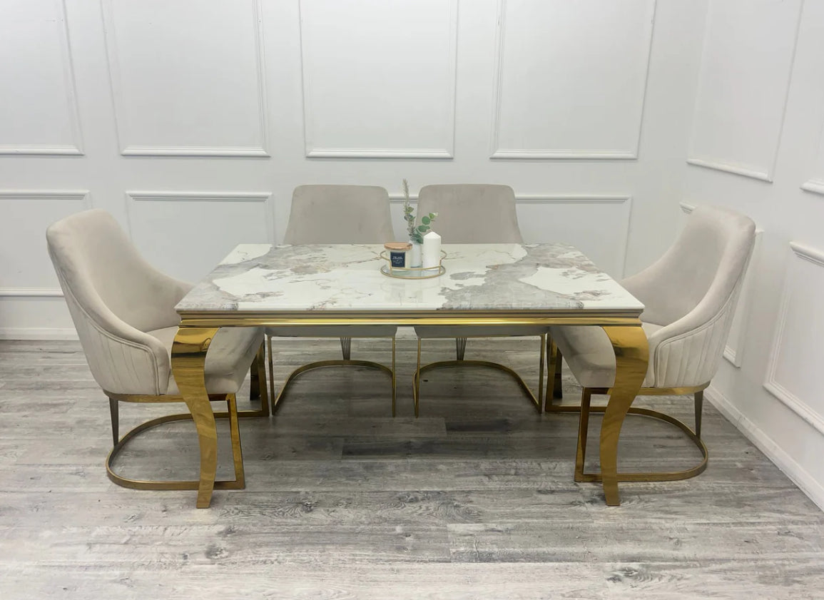 Venice Dining Table With Chelmsford Velvet Dining Chair | Louis Dining Sets