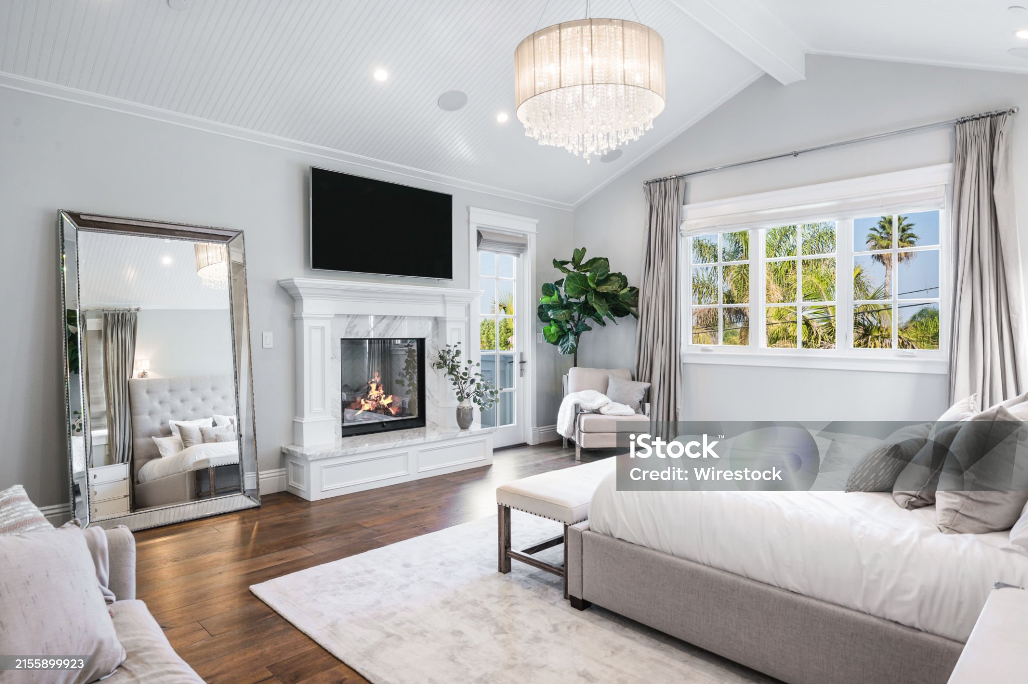 Home Accessories Modern, expansA well-furnished bedroom in a new construction home in Encino, Californiaive Bedroom