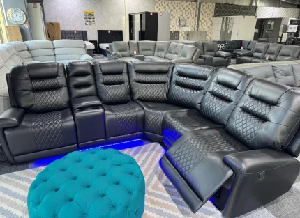 ELECTRIC RECLINER SOFA CORNER – Tech Fabric Sofa GREY WITH BLACK TRIM