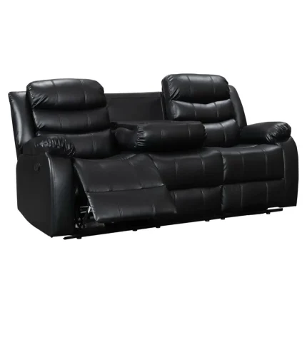Recliner Sofa Set 3 And 2 Seater Black Aire Leather with Drink Holder
