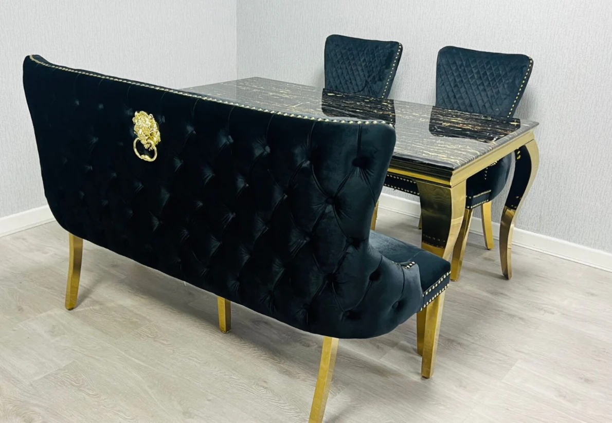 Bring timeless elegance to your dining area with the Victoria Black & Gold Luxury Bench. Expertly crafted with a sleek black finish and gold accents, this bench embodies modern luxury and sophistication.
